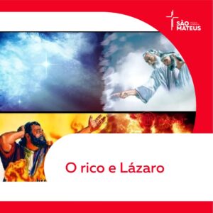 Havia um homem rico que vestia roupas muito caras e todos os dias dava uma grande festa. Havia também um homem pobre, chamado Lázaro, que tinha o corpo coberto de feridas, e que costumavam largar perto da casa do rico. Lázaro ficava ali, procurando matar a fome com as migalhas que caíam da mesa do homem rico. E até os cachorros vinham lamber as suas feridas. O pobre morreu e foi levado pelos anjos para junto de Abraão, na festa do céu. O rico também morreu e foi sepultado. Ele sofria muito no mundo dos mortos. Quando olhou, viu lá longe Abraão e Lázaro ao lado dele. Então gritou: “Pai Abraão, tenha pena de mim! Mande que Lázaro molhe o dedo na água e venha refrescar a minha língua porque estou sofrendo muito neste fogo!” — Mas Abraão respondeu: “Meu filho, lembre que você recebeu na sua vida todas as coisas boas, porém Lázaro só recebeu o que era mau. E agora ele está feliz aqui, enquanto você está sofrendo. Além disso, há um grande abismo entre nós, de modo que os que querem atravessar daqui até vocês não podem, como também os daí não podem passar para cá.” — O rico disse: “Nesse caso, Pai Abraão, peço que mande Lázaro até a casa do meu pai porque eu tenho cinco irmãos. Deixe que ele vá e os avise para que assim não venham para este lugar de sofrimento.” — Mas Abraão respondeu: “Os seus irmãos têm a Lei de Moisés e os livros dos Profetas para os avisar. Que eles os escutem!” — “Só isso não basta, Pai Abraão!”, respondeu o rico. “Porém, se alguém ressuscitar e for falar com eles, aí eles se arrependerão dos seus pecados.” — Mas Abraão respondeu: “Se eles não escutarem Moisés nem os profetas, não crerão, mesmo que alguém ressuscite.” Quer saber mais sobre esta história? Ao longo da semana vamos falar mais sobre este tema tão importante. Fiquem bem.